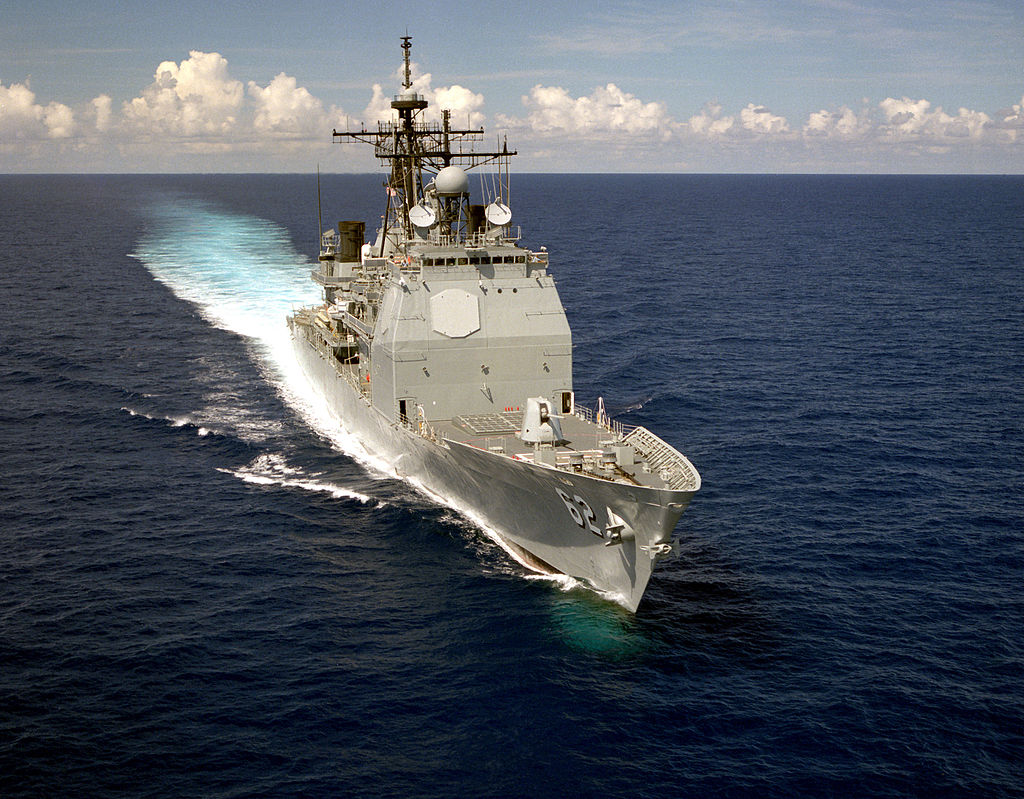 Chancellorsville carries guided missiles and rapid-fire cannons, with anti-air, anti-surface and anti-subsurface capabilities. She also carries two Seahawk Light airborne multi-purpose system (LAMPS) helicopters, focused on anti-submarine warfare