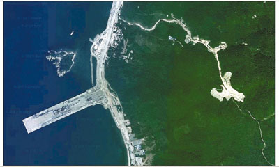 中國在海南省龐大的三亞海軍基地修建700米長碼頭的工程已經竣工。