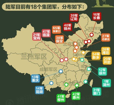 所屬軍區:濟南軍區 軍部駐地:河南新鄉 第1集團軍 所屬軍區:南京軍區 軍部駐地:浙江湖州