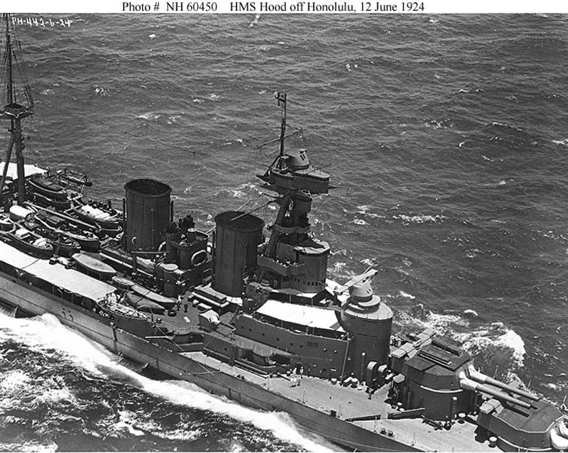 As one of the largest and, ostensibly, the most powerful warships in the world, Hood was the pride of the Royal Navy and, carrying immense prestige, was known as ‘The Mighty Hood’.![]()