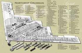 The Northrop (later Northrop Grumman) B-2 Spirit, also known as the Stealth Bomber, is an American heavy strategic bomber, featuring low observable stealth technology designed for penetrating dense anti-aircraft defenses; it is a flying wing design with a crew of two.[1][4] The bomber can deploy both conventional and thermonuclear weapons, such as eighty 500 lb (230 kg)-class (Mk 82) JDAM Global Positioning System-guided bombs, or sixteen 2,400 lb (1,100 kg) B83 nuclear bombs. The B-2 is the only acknowledged aircraft that can carry large air-to-surface standoff weapons in a stealth configuration.