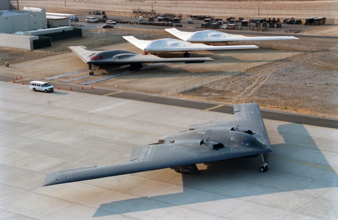 。1997年,首批六架B-2轟炸機正式服役,而至今一共只生產21架。在F-117A夜鷹攻擊機退役,F-35閃電II式戰鬥機尚未服役之時,B-2與F-22猛禽式戰鬥機為目前世界上僅有可以進行對地攻擊任務的匿蹤型機種。每架B-2造價為24億美元,若以重量計,B-2的重量單位價格比黃金還要貴兩至三倍。