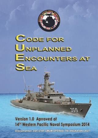 The following is the April, 2014 version of the multi-national Conduct for Unplanned Encounters at Sea (CUES) signed by 21 Pacific nations at the 14th Western Pacific Naval Symposium in Qingdao, China. CUES is a series of non-binding rules-of-the-road to prevent an escalation of tensions between different militaries at sea.