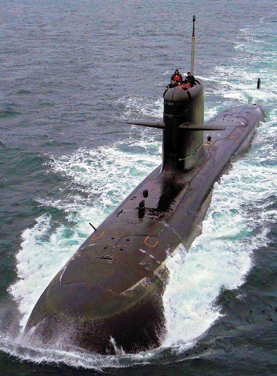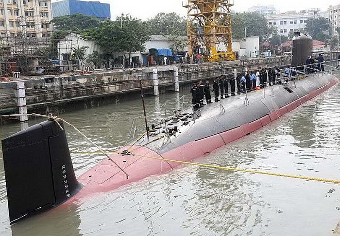 印度P75型“鮋魚”(Scorpene)潛艇首艇下水。該型潛艇是印度和法國DNC公司合作建造的。計劃建造6艘,首艘在法國建造,其他五艘鮋魚級潛艇將在印度本土建造。