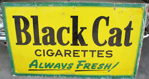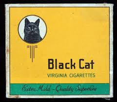 The Black Cat cigarette was introduced in 1904 as one of the first machine-made cigarettes manufactured in Britain. The cat was used in some of the earliest cigarette promotions, including the Black Cat stamp album which was issued free to smokers. Stamps were available inside the cigarette packs and £325 in prizes was offered for the best completed albums.