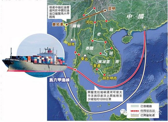 克拉運河是馬六甲海峽的替代方案。馬六甲海峽是中國海上運輸的生命線,中國從中東運輸的石油就經過馬六甲海峽。