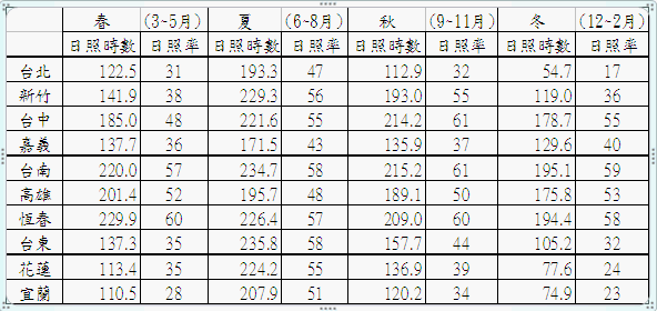 台灣地區日照時數及日照率 向陽太陽能-服務專線:0916-756561