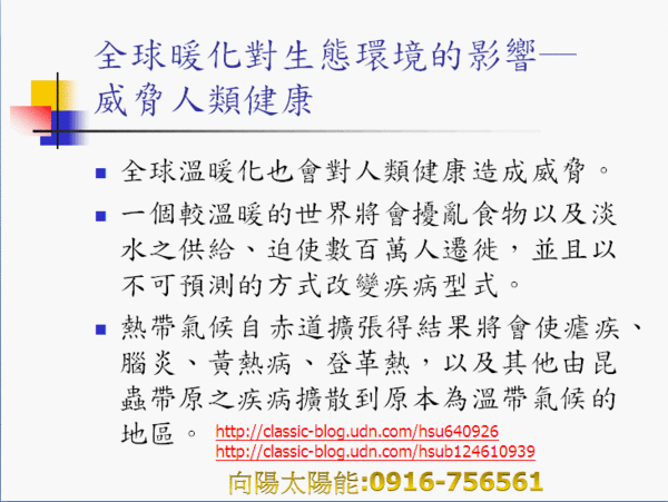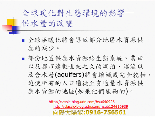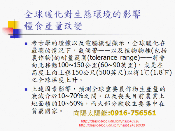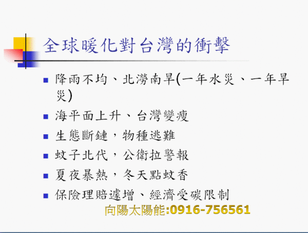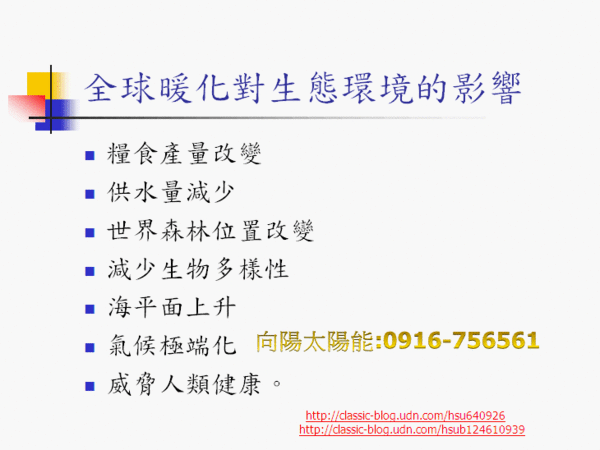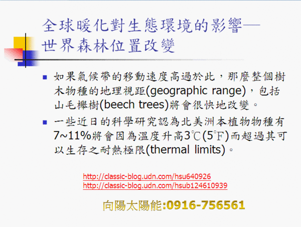 全球暖化對生態的影響 向陽太陽能0916-756561
