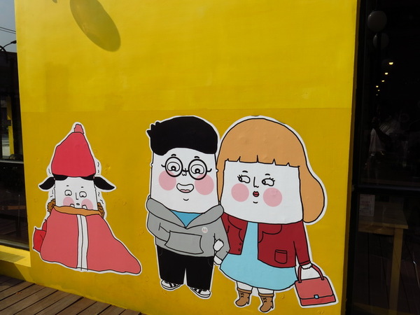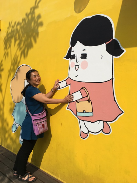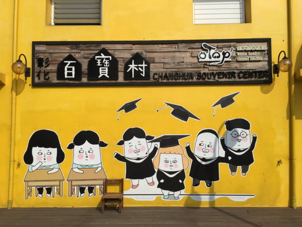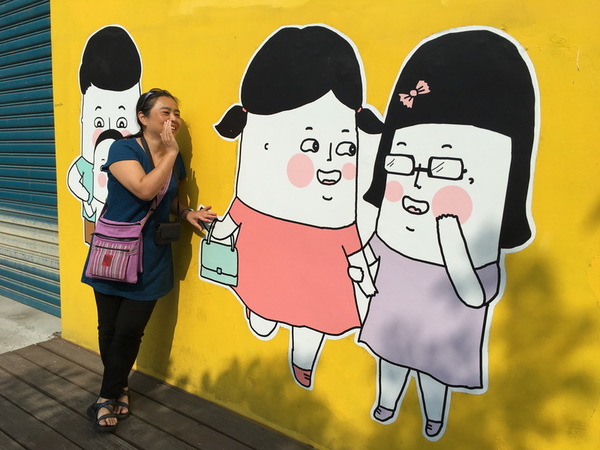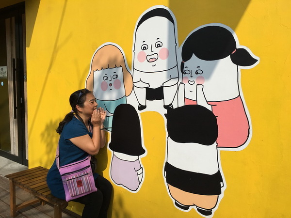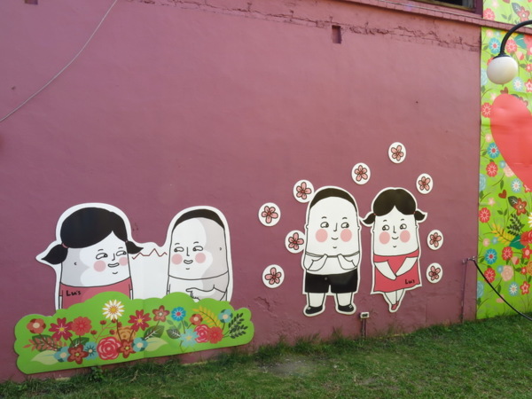 鮮豔的鵝黃色牆面,是相當顯眼地標,搭配Lu’s筆下知名主角「達達」與「妃妃」可愛逗趣的表情,超具個人風格,都會讓人會心一笑,讓百寶村更增添活潑朝氣的熱鬧氛圍。