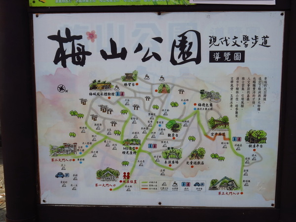 踏入梅山公園,園區依山勢闢建,滿園翠綠,景色宜人。