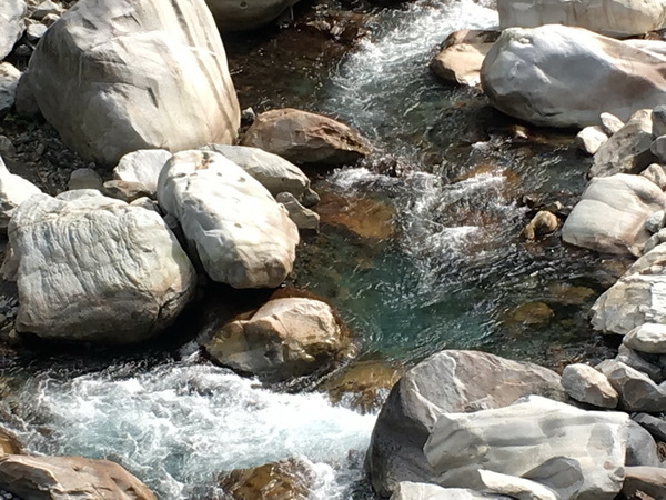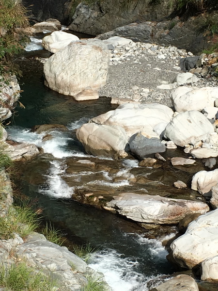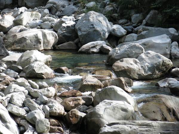 乾淨清澈的十文溪,溪中大小石塊怪石嶙立,景觀保持得相當自然。