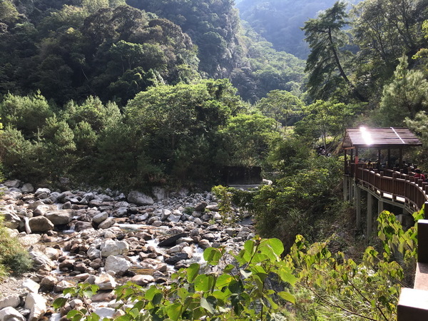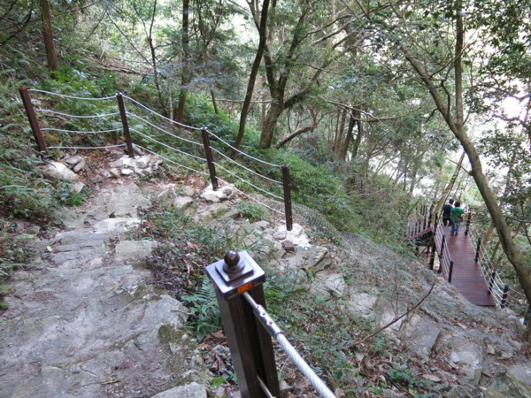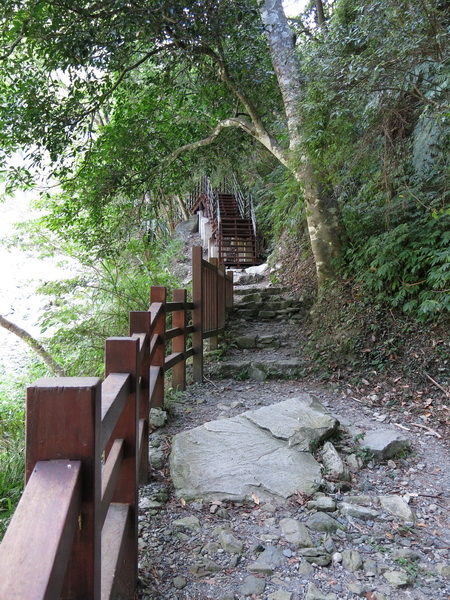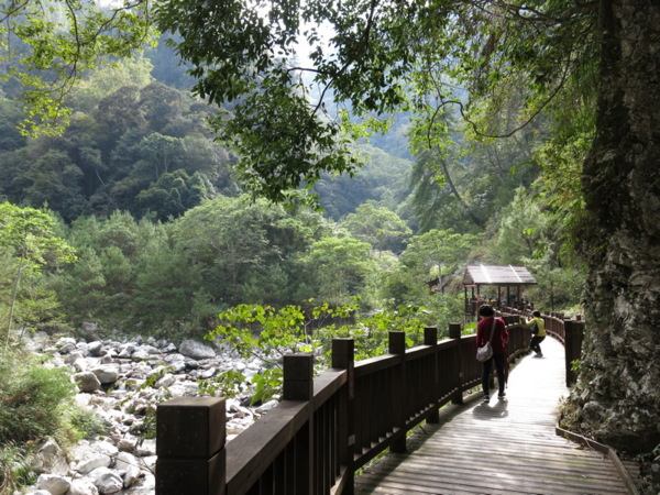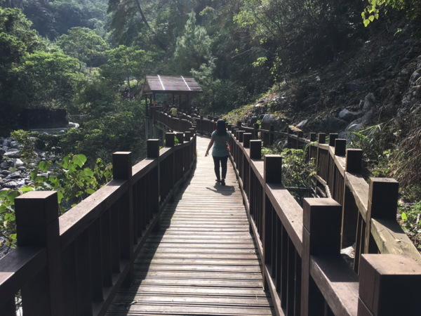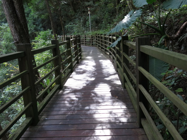 長度約百公尺的棧道,平坦好走,沿溪一側還設有安全欄杆。