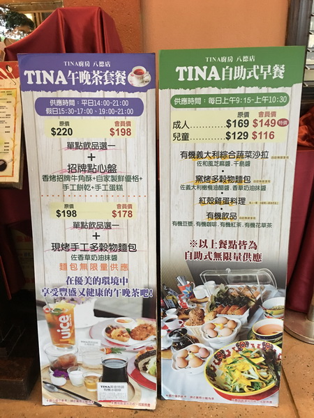 進到園區之後再往前走一點就可以看到TINA廚房了,早餐是自助式的,時間是上午9:15~10:30。