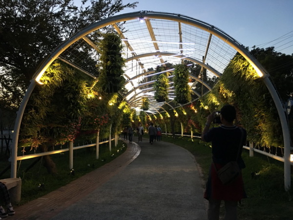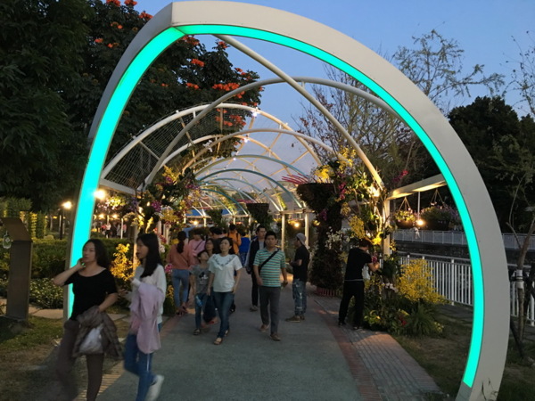 浪漫花廊道,白天繽紛,晚上點燈之後更有氛圍。