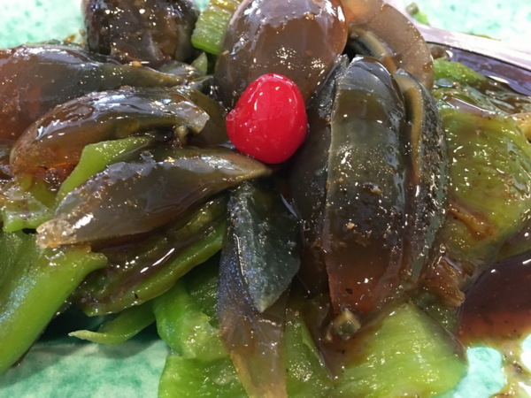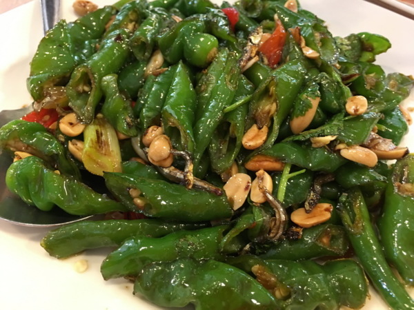 青龍吐珠,青辣椒炒小魚干及土豆,味道鹹中帶點微甜。