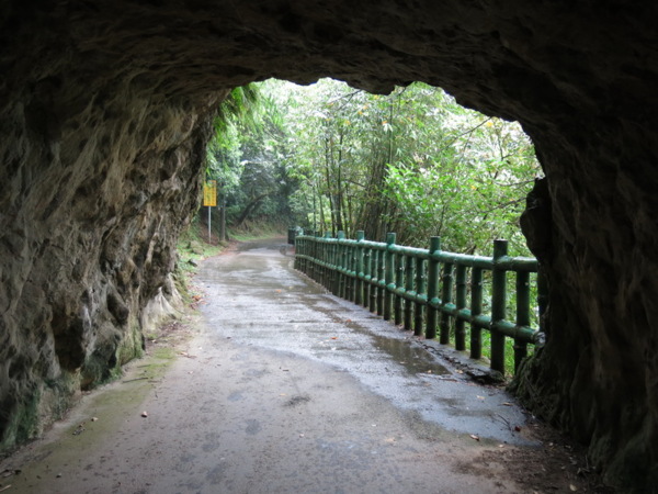 09:00 二坑隧道,這段步道是昔日的運煤台車道舊跡,已鋪上柏油路,小隧道依舊在,卻已不見台車蹤跡。至此,步道沿途都有林蔭遮蔽,也是一條老少咸宜的林蔭步道,路徑清幽,頗讓人覺得驚喜。
