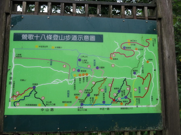 10:38 柏油路與中正一路的交叉口,路口有一幅巨幅的「新北市鶯歌區登山步道導覽圖」,往右行。