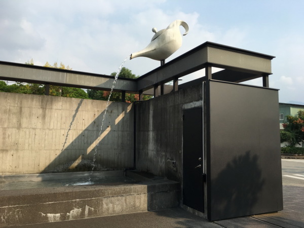 入口意象,是一堵漆黑的高牆,上方有一座泡茶壺的放大版,令人印象深刻。