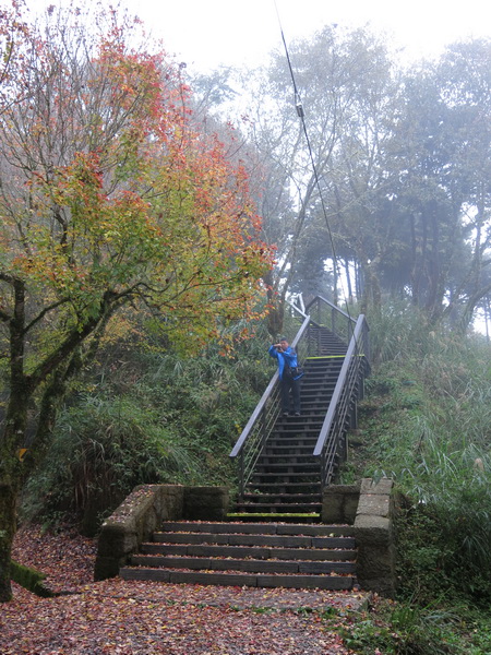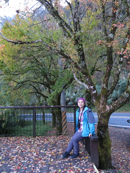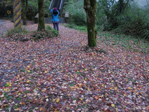 在12月冷冽的季節裡,火紅的楓葉,點綴著阿里山的山巔與山谷,階梯、平台及地面佈滿了層層交疊落下的楓葉。