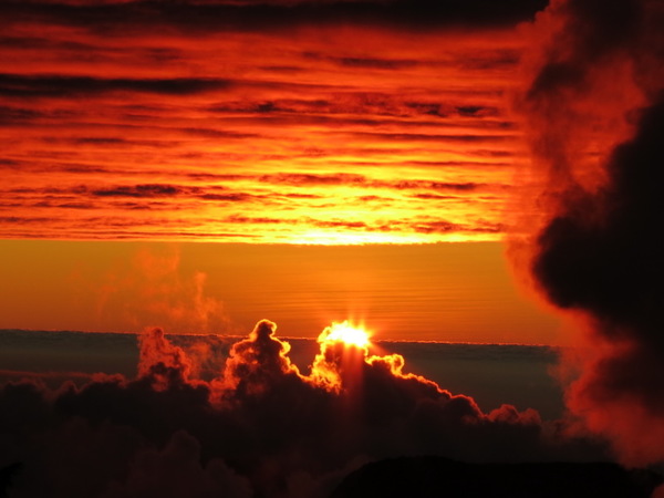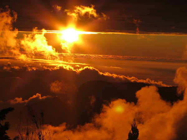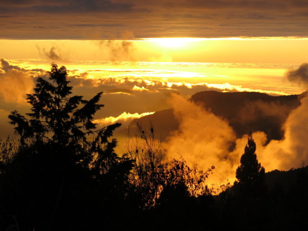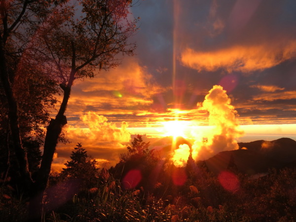 看著群山環繞下的雲海湧動,夕陽緩緩降下,大自然的創作,總是一再的給人們無限的驚喜。
