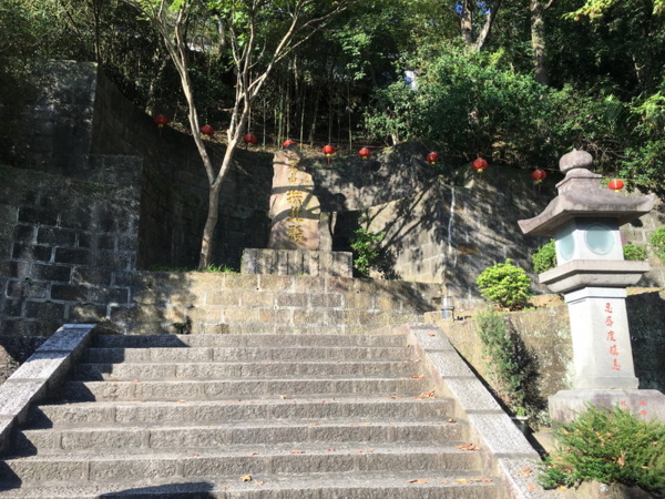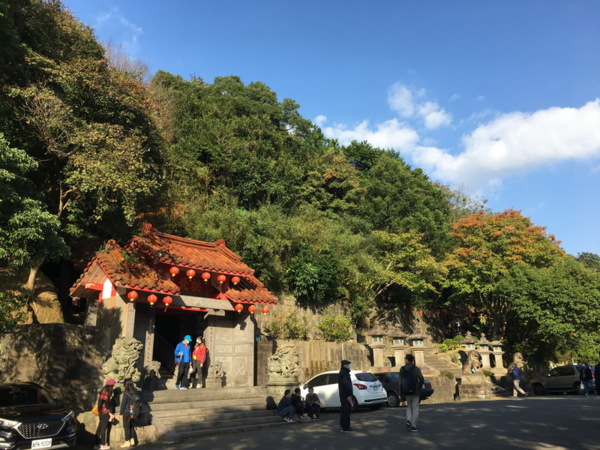 入口有兩處,一處是有日本神社鳥居形式的山門,步道旁有多座日式石造燈籠,大部分的遊客皆是由此進廟參拜。