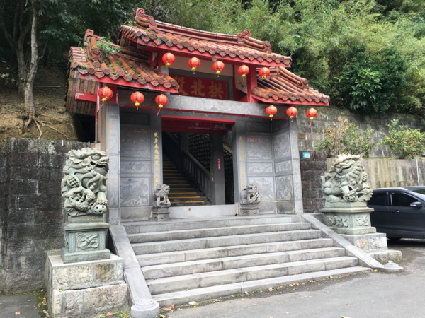 遠眺可見位於青翠山林間層層疊疊、古樸素雅的廟宇依山而建,從路旁斜坡進入,一座雄偉的牌樓矗立在山腳下,沿著蜿蜒的山路緩緩而上,不遠處道路開始拓寬,路旁出現了停車位,一路上到廣場平台皆有提供停車位。