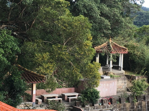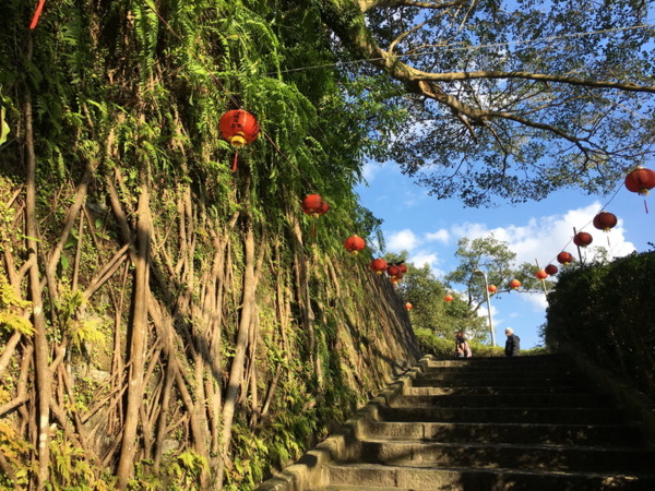 古色古香的廟宇依山而建,我們拾級而上來到廟宇後方,近距離就可見到中式建築的美。