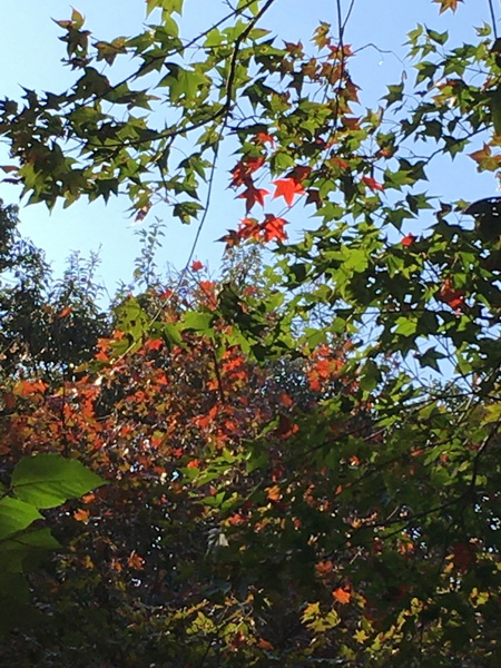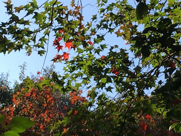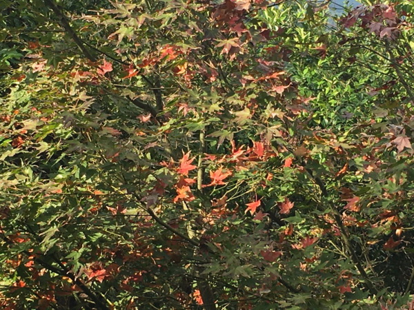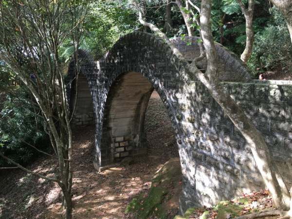 拱橋周圍山坡上有許多高大青楓樹和槭樹,若披上滿山遍野的紅衫,會是幅美麗的自然畫作,可惜楓葉多已掉落怠盡。