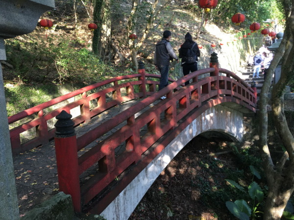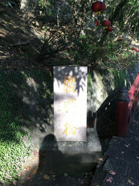 回頭往出口續行,經過一座醒目的紅色木橋「彼岸橋」,跨越在山間的小溪澗上,整個清幽的山林頗具日式風格,聽說這座橋是日本人贈與廟方的。