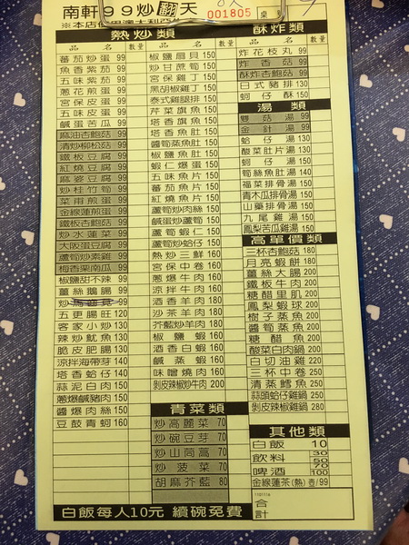 南軒99炒翻天,位於集集車站附近,若在集集鎮旅遊要吃經濟合菜,大概就選南軒了。