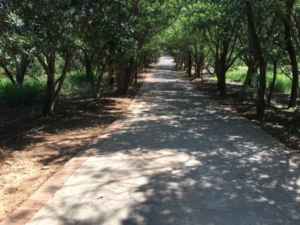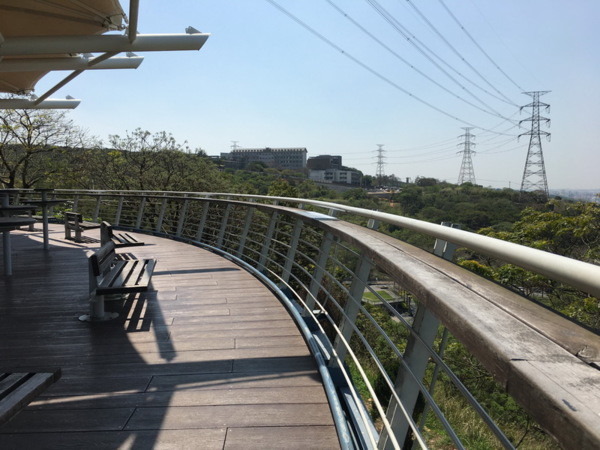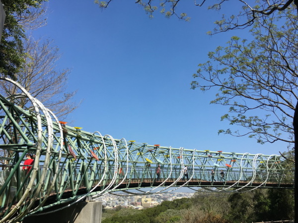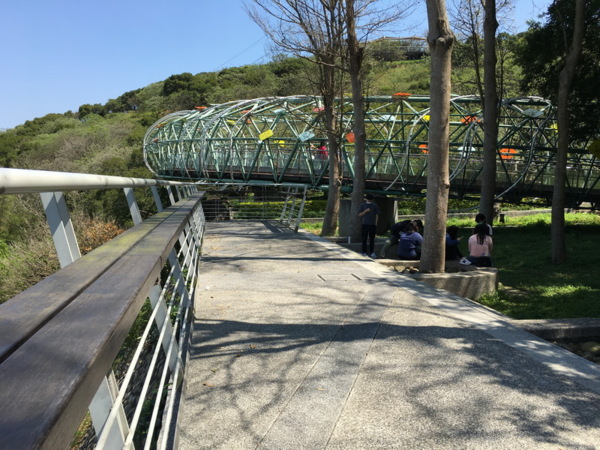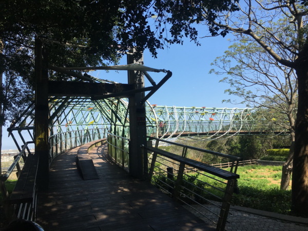 鰲峰玉帶,園區內還增設了一條空中步道,鋼構木棧設計,提供給民眾散步時多方面欣賞週遭景色的角度,步道規劃寬敞穩固,非常完善。