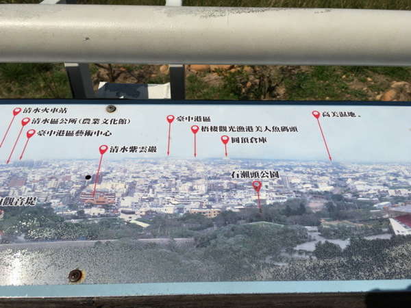 此地視野極佳,可以看到中火、鰲峰山陽光草坪、梧棲童綜合醫院等風景。