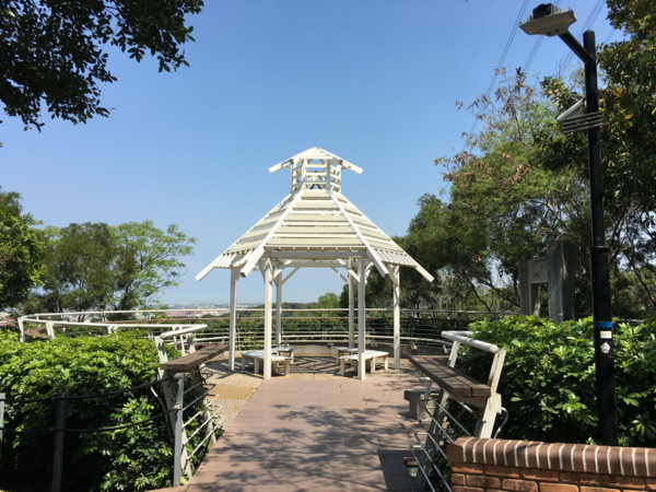 平台入口,是一條三叉路口,進來之後右邊有一座白色涼亭,這邊也可以俯瞰市區美景。