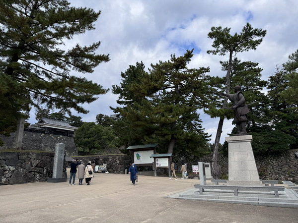 來到松江城入口處,一旁立了一尊堀尾吉晴公像,堀尾吉晴出身自織田家的部下,後來投效豐臣秀吉,因戰績彪炳,晉封為大名,是豐臣三中老之一。