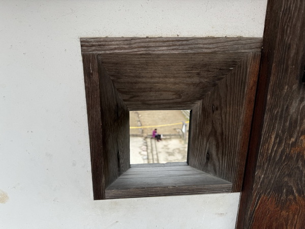 第二層,設有更多的狹間及落石孔,可讓守城士兵從內部防禦。