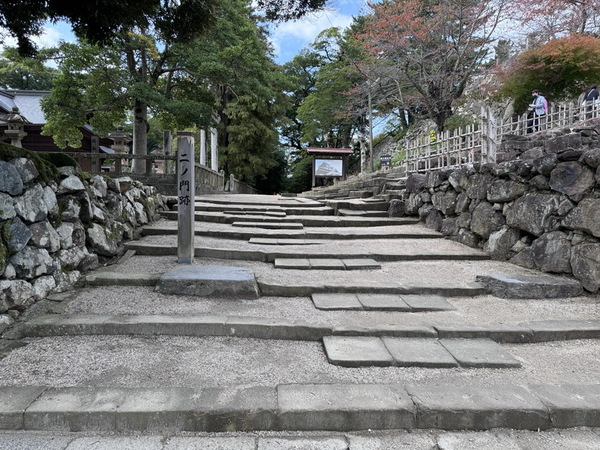 二之門跡,「二之門」位於三之門與一之門之間,設置在通往天守閣的主要坡道上,是一個戰略上的「中間防線」,此處空間狹窄、地勢略高,便於從兩側石垣或櫓上進行夾擊,石垣基座遺跡仍保存清晰可辨。