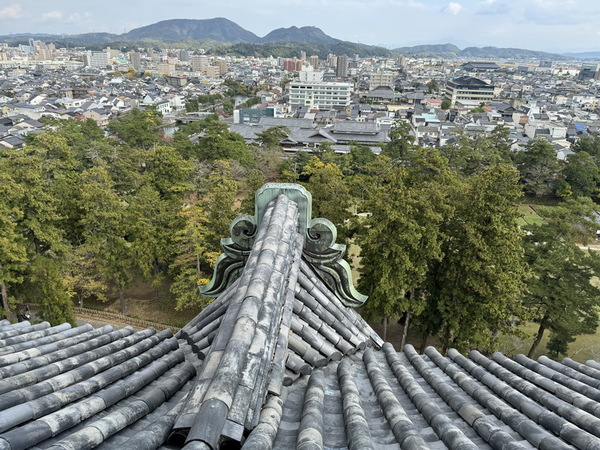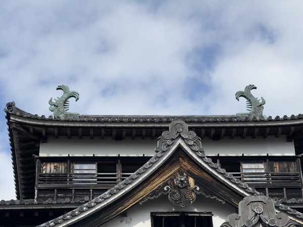 雄踞於天守最上層屋頂的「鯱(しゃち)」也是必看的重點,松江城的鯱左右兩側大小不一,這種虎頭魚身的裝飾物,是祈求建築免於火災的守護神,常見有陶製、木製或是青銅製,松江城的鯱高約2米,主體為木製,再以銅片包覆強化,現在的鯱是昭和大整修時重新製作的,是現存天守中最大的鯱。