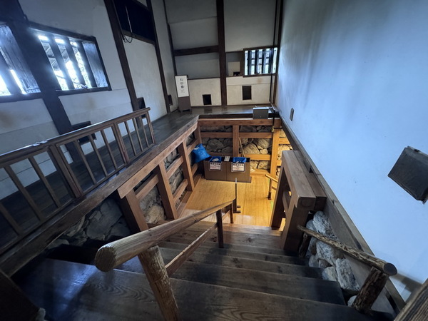 南側入口連接一座包含地下室的平屋附櫓,作為進入天守的把關口,能夠更加穩固防備機能。我們從平屋附櫓進入天守,入內需要脫鞋放入鞋櫃。