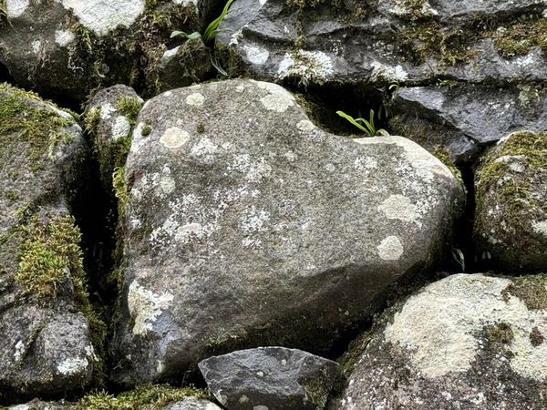 有心形石頭的石牆,從大手木戶門遺跡進入「松江城」後,左手邊有雄偉的石牆聳立,左手後方有延伸到天守方向的階梯,在階梯的石牆隱藏著心形的石頭,據說找到它就會得到幸福,在前往天守閣時並未尋到,沒想到回程時竟然發現了它的存在,給了我們一個小驚喜。