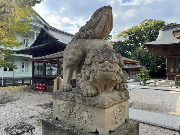 本殿前,與其他神社一樣,都有守護犬守護著入口,它們用後腿站立,隨時準備突襲,很有趣。