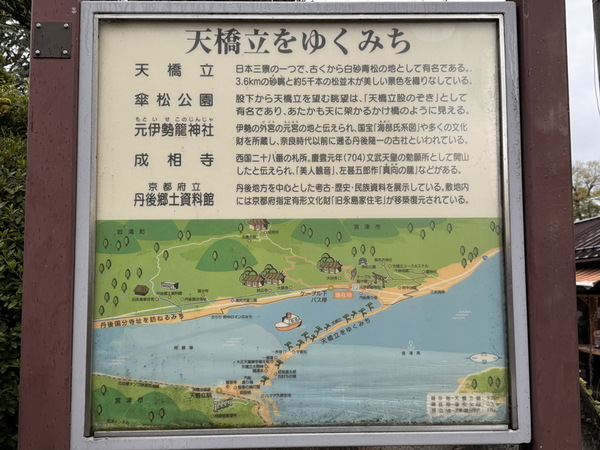 胯部觀景台,站在臺上低頭從跨下看天橋立被稱為「又見」,景色是海天顛倒的,看起來彷彿一座架向天際的橋樑,因此有「連結天地的橋樑」的美稱。