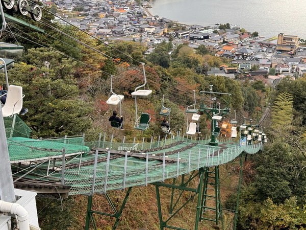 纜車分為兩種,一種是地面纜車,另一種則是一個開放式的吊椅,上午我們已經在依根舟屋先買了觀光套票搭纜車,兩者皆可使用,很方便,這次上山選擇搭吊椅。