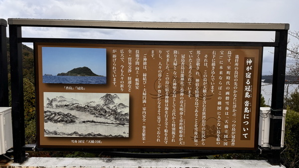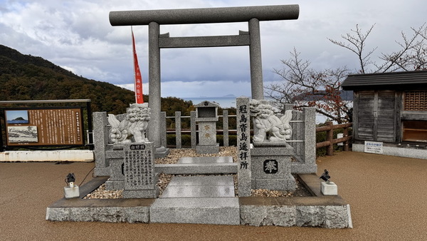 展望台前的廣場上,有一座小巧而莊嚴的祭祀場所—「冠島沓島遙拜所」,「遙拜所」是指無法直接前往神聖地點參拜時,從遠方設置一處可朝向該地膜拜的場所。這個遙拜所是為了朝拜日本海上的「冠島」與「沓島」而設立。