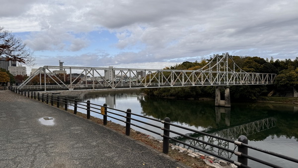 從月見橋跨越旭川的橋面上,可以遠眺岡山城與彎曲河道所形成的美景。