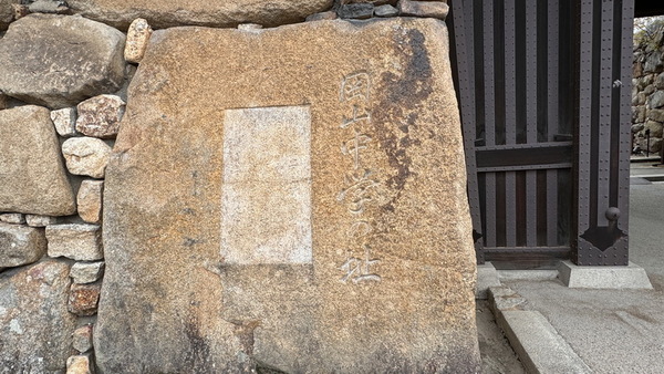 不明門門邊有一塊巨大花崗岩,上面刻著「岡山中学校之址」六個字。這塊石碑看似平凡,卻訴說著岡山城從武士時代邁入近代教育時期的歷史變遷,見證著岡山城由封建武士城,轉變為近代教育基地的歷史軌跡。