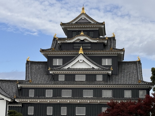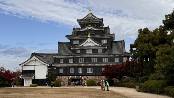 岡山城不僅是歷史建築,走在黑色天守閣下,望著後樂園的優雅景致,會覺得這裡完美融合了戰國武士的豪情與日式庭園的浪漫。建議可以安排與後樂園一同參觀,兩地隔著旭川相望,有「月見橋」相連,散步途中就能同時欣賞兩大名景,在即將結束的日本賞楓之旅中,岡山城與後樂園畫下了這趟旅程中完美的句點。