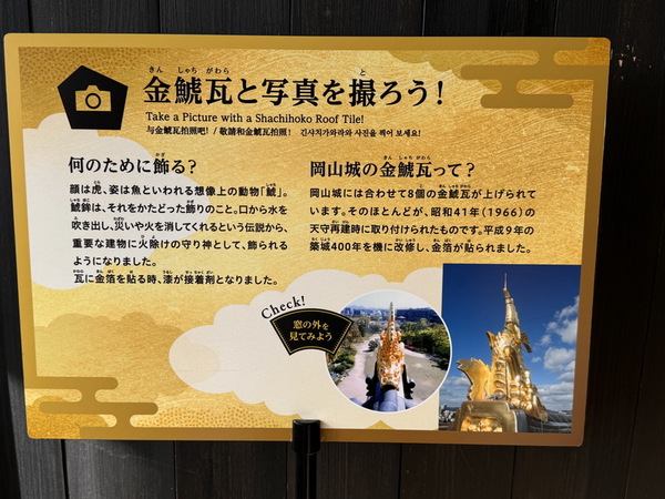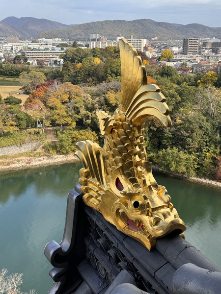 屋簷四周共設有8隻金鯱,在陽光照射下閃閃發光,展現了城主的尊貴地位及威嚴感。