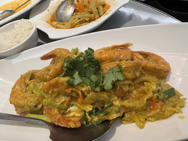 咖哩蝦,滇緬地區有很多咖哩料理,將鮮蝦與濃郁的黃薑咖哩、芹菜、洋蔥、蛋和奶水等材料一起烹調,鮮嫩多汁。