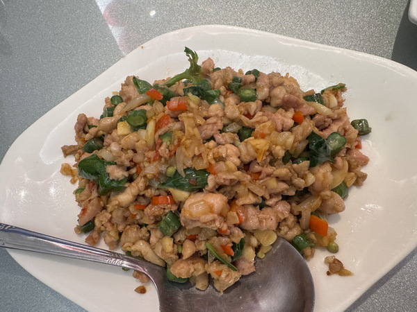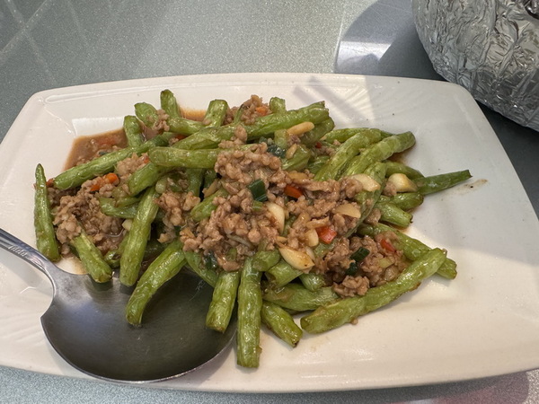 蝦醬四季豆,除了四季豆還有豬絞肉,這道菜非常好下飯,也是七彩雲南餐廳的招牌菜之一,四季豆以蝦醬爆炒,豐富有層次,香辣夠味、口感爽脆。