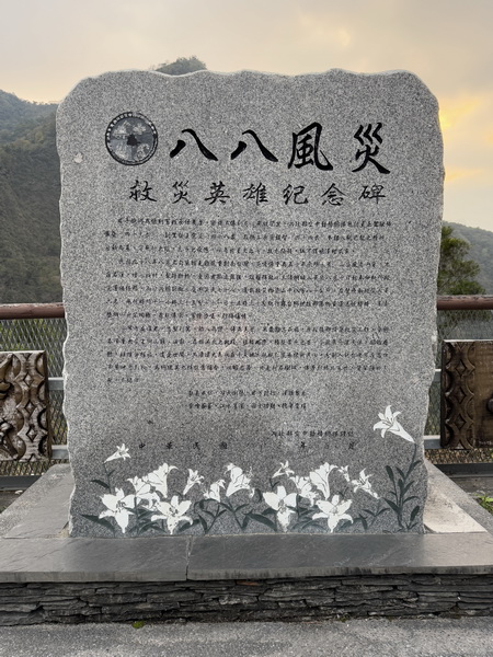 這裡還有一個八八風災救難英雄紀念碑,是為了緬懷三位在救災過程中不幸罹難的英雄,讓往來的旅客能知道美景背後的故事。